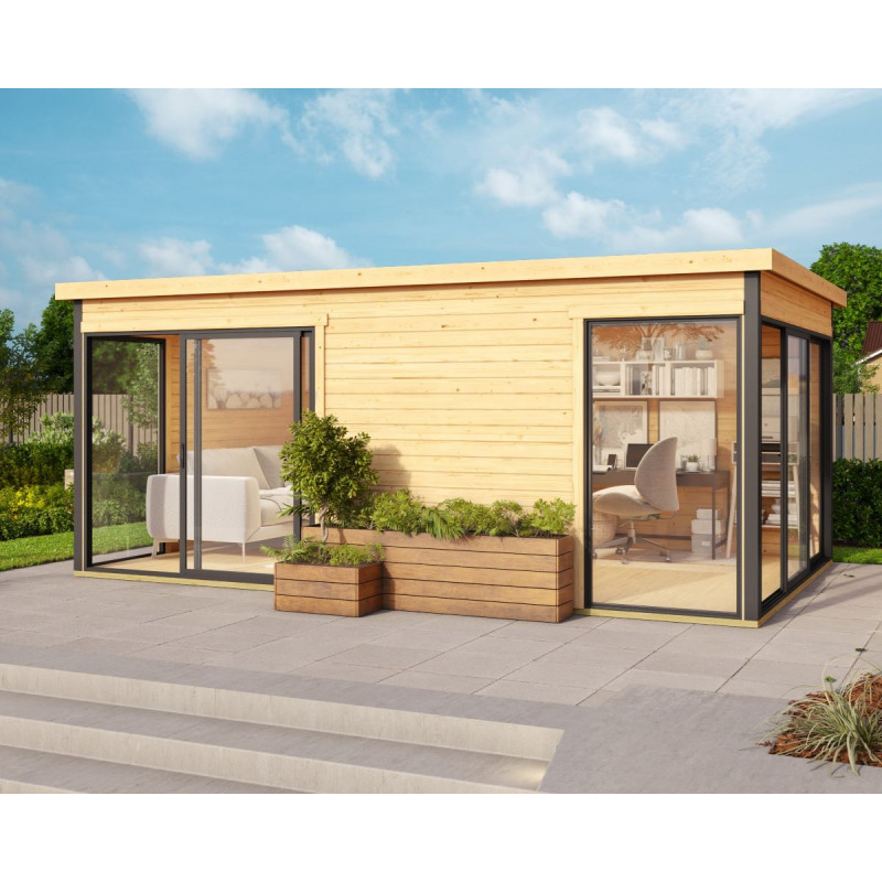 Abri de jardin Délices + appentis 19,77m² en bois massif 28mm avec double porte – Décor et Jardin