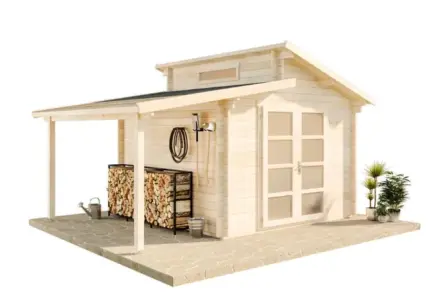 Abri de jardin 2 pièces Kampen Alpholz, 4.6×3.1m dim. ext. (cas échéant incl. débord de toit) naturel, 40mm, 14,3m² superficie totale