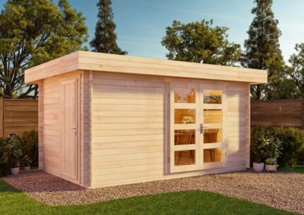 Abri de jardin 2 pièces Kampen Alpholz, 4.6×3.1m dim. ext. (cas échéant incl. débord de toit) naturel, 28mm, 14,3m² superficie totale