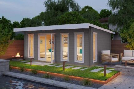 Abri de jardin à toit plat Quinta Petite ISO Alpholz, 5.8×4.8m dim. ext. (cas échéant incl. débord de toit) imprégné, 44mm, 27,3m² totale