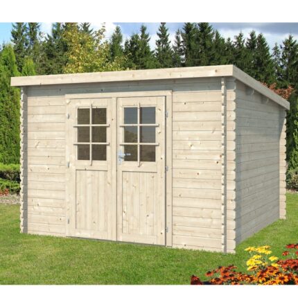 Abri de Jardin en Bois Naturel – Stockage extérieur avec fenêtres- H226x316x324 cm/9 m² hangar en bois naturel – TIMBELA M335