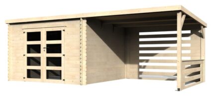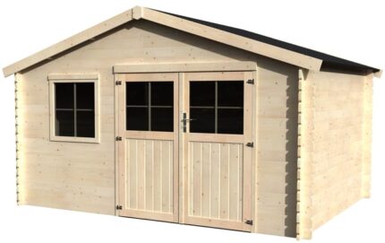 Abri de jardin bois Boreal – 8.28 m² utile – 3.98×2.48 m – Ep. 28 mm – Couleur : naturel – Décor et Jardin