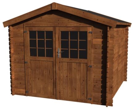 ABRI DE JARDIN bois Pin autoclave 27mm – 3,44×2,14m / 7,4m2 – Bac acier – Abri Français