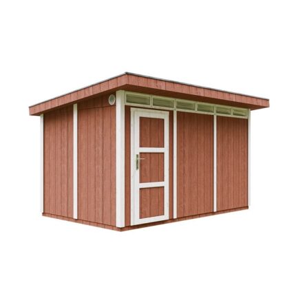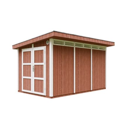 Abri de jardin à base de bois en panneaux LP SmartSide 9 m² – avec sol et tuiles bitumineuses L412xL279xH237 cm – Timbela M904 – Redwood red