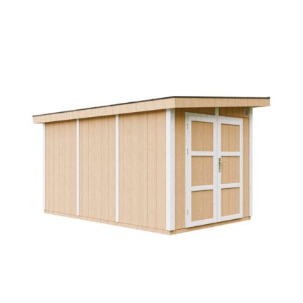 Abri de jardin à base de bois en panneaux LP SmartSide 9 m² – Abri de jardin avec sol et tuiles bitumineuses L412xL279xH237 cm – Timbela M904