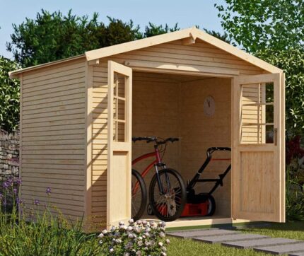 Abri de jardin bois Salzburg 11,56m2 – 3,88 m x 2,98 m – Ep. 34 mm – Couleur: naturel – SOLID