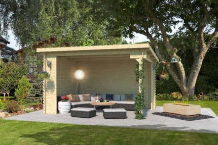 Abri de jardin Gabriel-34 400 x 300 cm Alpholz, 4.3×3.7m dim. ext. (cas échéant incl. débord de toit) naturel, 34mm, 15,7m² superficie totale