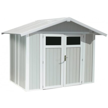 Abri de jardin en PVC 7,5m² DECO gris clair et blanc Grosfillex + kit ancrage offert