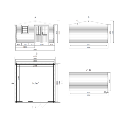 Abri de jardin en bois massif 16m² PLUS – madriers 28mm Gardy Shelter