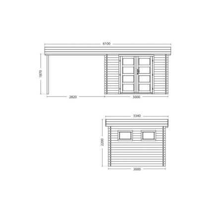 Abri de jardin en bois massif 18m² avec appentis – madriers 28mm – Eden