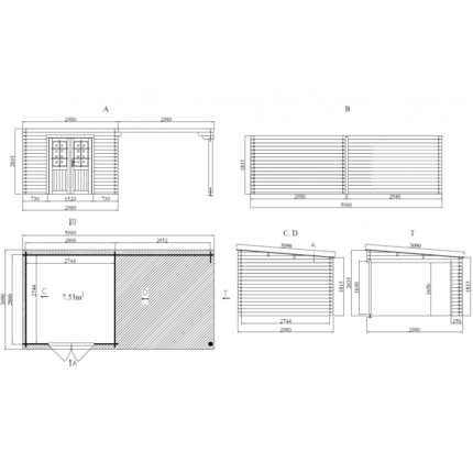 Abri de jardin en bois massif 19mm Amberg porte double 7,39m² SOLID