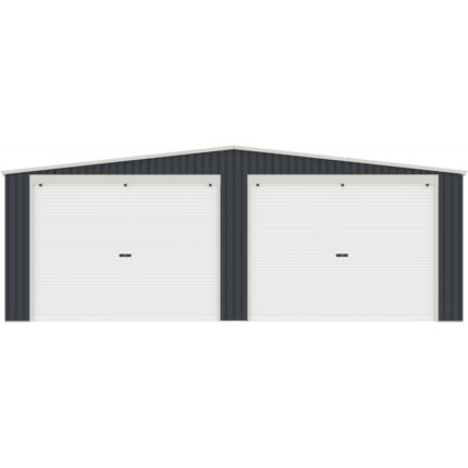Garage double 637x513cm en acier galvanisé gris anthracite avec portes enroulables – X-METAL