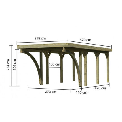 Carport en bois autoclave 20,9m², toit en acier et deux poteaux en arc – KARIBU