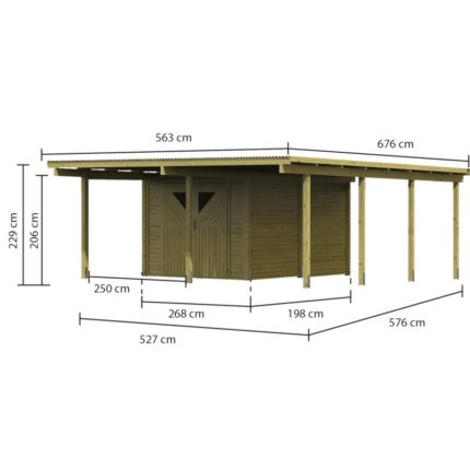 Carport en bois autoclave 30,35m² avec débarras 9m² – Karibu