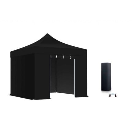 XPtent Pack Barnum, Tonnelle Professionnelle 3X3 Structure en Aluminium 45mm Toit 380g/m² Noir + Lot de Bâches pleines et porte Noir