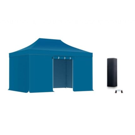 XPtent Pack Barnum, Tonnelle Professionnelle 3X3 Structure en Aluminium 55mm Toit 380g/m² Bleu + Lot de bâches pleines et porte bleu