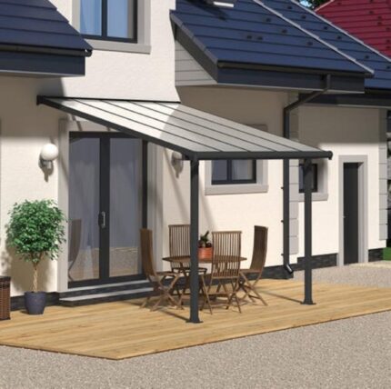 Pergola adossée grise OLYMPIA 5,46 x 2,95m, aluminium et polycarbonate, PALRAM