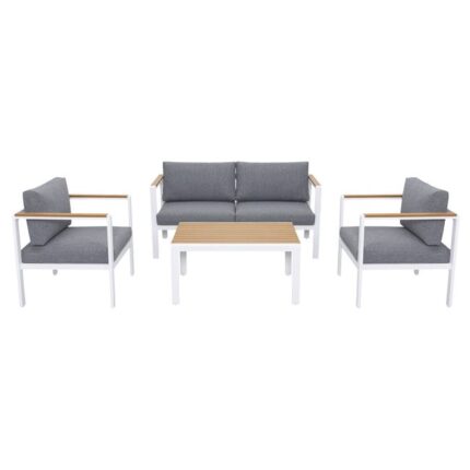 Salottino 4 posti con cuscini “Kubik” in alluminio verniciato da giardino e veranda