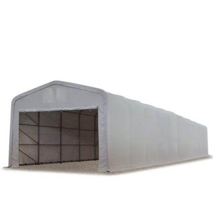 5×16 m hangar, porte 4,1×2,5 m, toile PVC de 850, gris, avec statique (type de sol : béton)