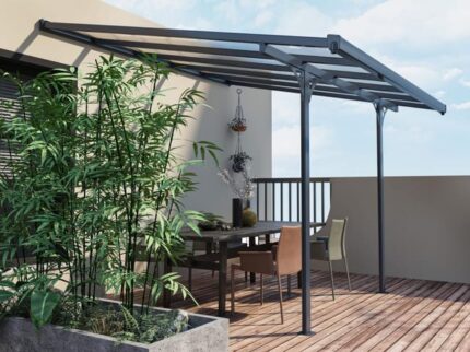 Pergola adossée NATERIAL Yena acier et aluminium gris anthracite, 12.85 m²
