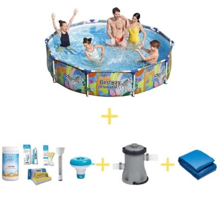 Bestway Piscine – Steel Pro – Animaux – 305 x 66 cm – Avec WAYS Kit d’entretien, Pompe de filtrage & Tapis de sol