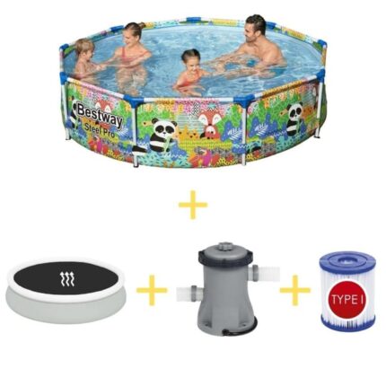 Bestway Piscine – Steel Pro – Animaux – 305 x 66 cm – Avec Tapis Solaire, Pompe de filtrage & Filtre