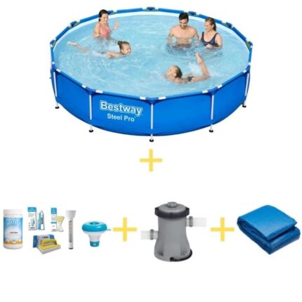 Bestway Piscine – Steel Pro – 366 x 76 cm – Avec WAYS Kit d’entretien, Pompe de filtrage & Tapis de sol