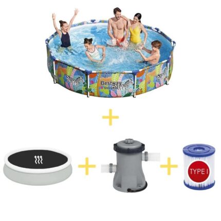 Bestway Piscine – Steel Pro – 366 x 76 cm – Avec Tapis Solaire, Pompe de filtrage & Filtre