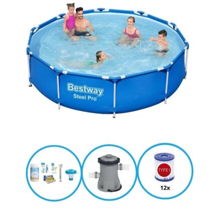 Bestway Piscine Steel Pro – Bundle de piscine – 396×84 cm
