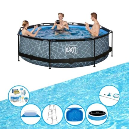 EXIT Piscine Stone Grey – Frame Pool ø300x76cm – Plus accessoires inclus