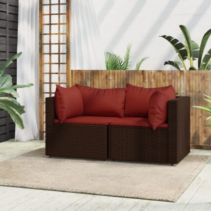 The Living Store – Canapés d’angle de jardin et coussins2pcs marron résine tressée