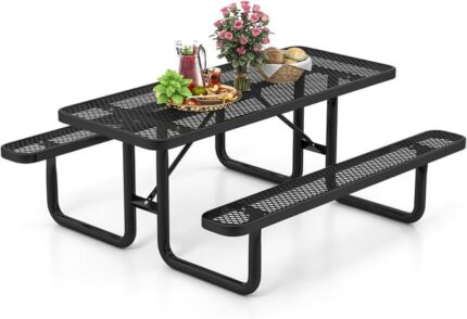 COSTWAY Ensemble Table et Bancs de Pique-Nique pour 8 Personnes,Charge 450KG, Table de Camping 184 x 171 x 75 cm, Noir