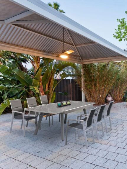 CADAQUES – Ensemble table et chaises de jardin – 8 places – Gris Anthracite