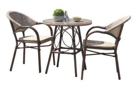 Ensemble bistro de jardin design Acapulco 2 places 3 pièces avec coussins