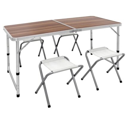 Ensemble Table Et Chaises Jardin Camping Pique Nique Aluminium 120cm Bois Brun