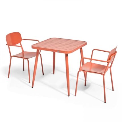 Ensemble table de terrasse et 2 fauteuils en aluminium terracotta , Bristol – Oviala