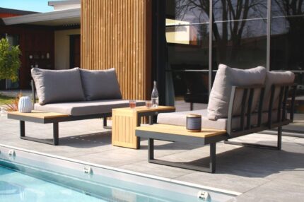 Salon bas de jardin en aluminium et teck Ionis NATERIAL, 5 personnes