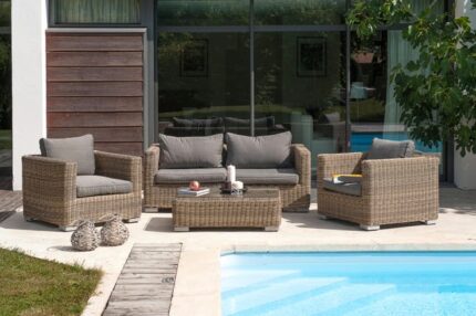 Salon bas de jardin BONHEUR en résine tressée – DCB GARDEN
