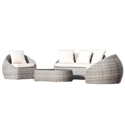 Salon ISA 5 places en résine tressée demi ronde – GRIS