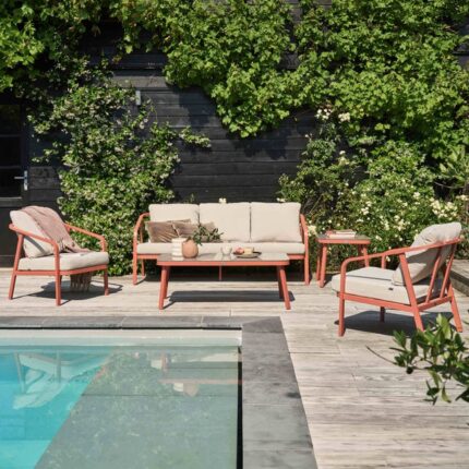Salon de jardin modulable TOKYO 4 places acacia et aluminium, blanc – DCB GARDEN