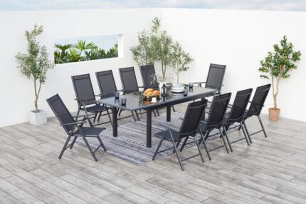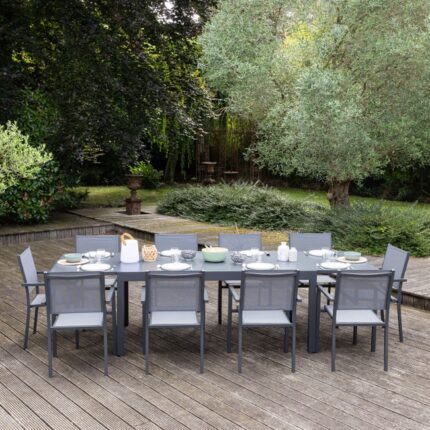 Salon de jardin extensible 10 places de 180/300cm en textilène gris – aluminium anthracite VENEZIA