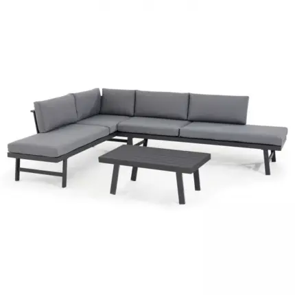 Salon de jardin LAMPEDUSA extensible en textilène gris 8 places – aluminium anthracite