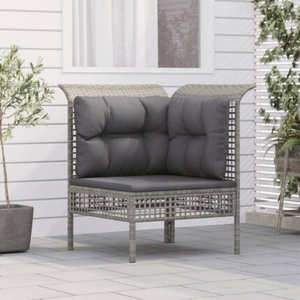 Canapé d’angle de jardin avec coussin gris résine tressée vidaXL