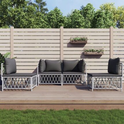 Salon de jardin 4 pcs avec coussins blanc acier vidaXL
