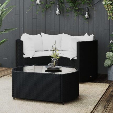 Salon de jardin 4 pcs avec coussins Résine tressée Noir vidaXL