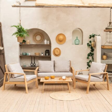 Salon de jardin en acacia 4 places GILI – coussins sable