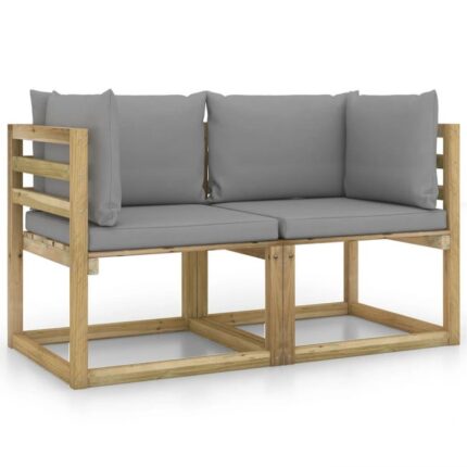 Canapés d’angle de jardin 2 pièces et coussins pin imprégné de vert 02_0013311