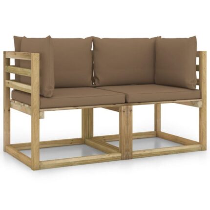 Canapé palette de jardin 2 places et coussins taupe 02_0013270
