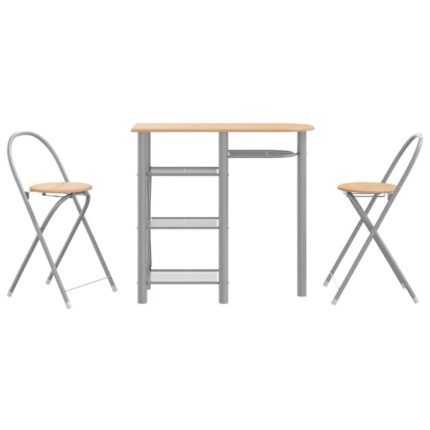 Ensemble de bar 3 pcs | Moblier de Salle à Manger,bistro gris et marron bois d’ingénierie et fer382489