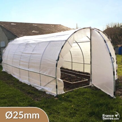 Serre tunnel 18m² avec porte sur chaque pignon – Bâche renforcée et structure Ø25mm